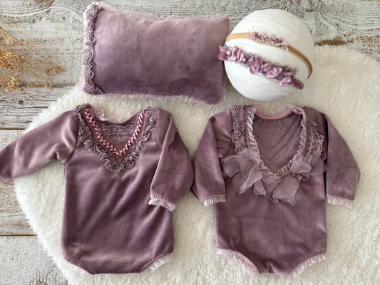 Velvet Long Sleeve Newborn Romper – Photography Outfit with Pillow & Headband Option