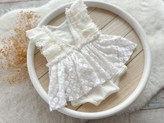 White Lace Baby Girl Dress for Newborn Photography - Boho Newborn Romper