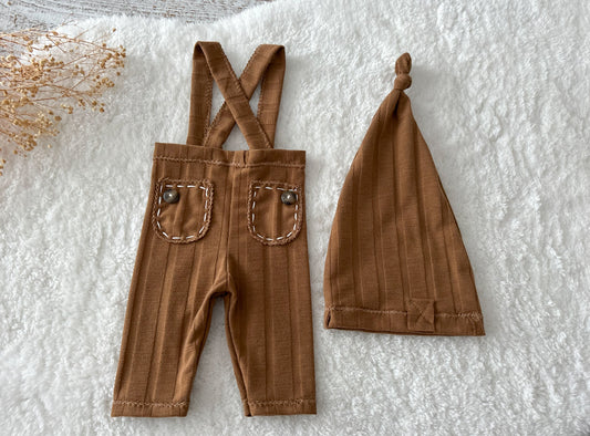 Newborn Boy Photo Outfit - Brown Suspender Pants and Sleepy Hat Set