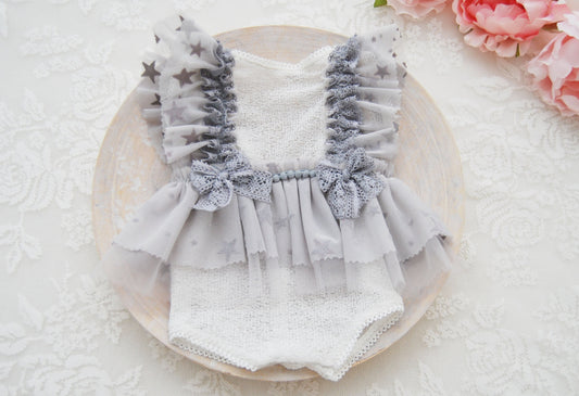 Gray Newborn Photo Romper for Baby girls - Star Lace Romper Photography Outfit